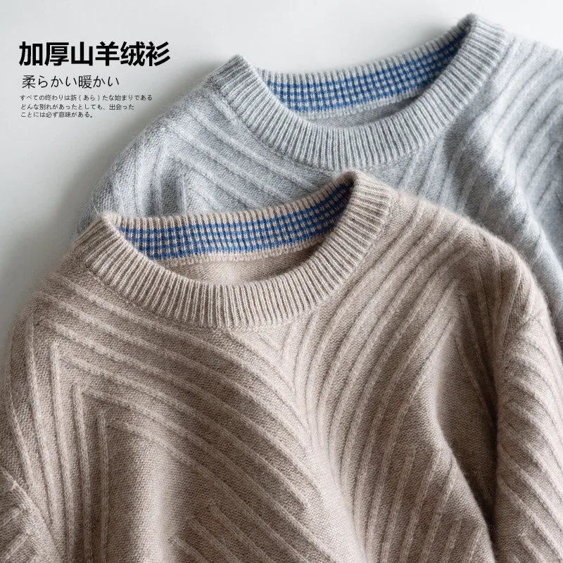 50% OFF Cashmere sweater men's round collar thickened loose pullover autumn and winter new business leisure bottom warm knitted sweate